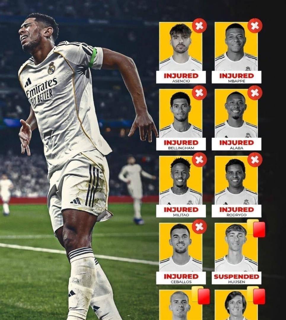 第一个难题,也是最致命、最直观的打击,来自那份长得令人揪心的伤病与停赛名单。 这早已超出了“阵容不整”的范畴,简直就是对球队骨架的抽筋剥皮。 锋线上,被寄予厚望的超级新援姆巴佩在联赛冲刺阶段拉伤了腿筋,宣告赛季报销;那个总能带来惊喜的巴西精灵罗德里戈,同样躺在医疗室里,他的灵动与突破本是破密集防守的利器。 中场核心,年轻的贝林厄姆,在上一轮鏖战后被检测出肌肉纤维撕裂,他的后插上和进攻调度无人可以替代。 后防线更是重灾区,定海神针米利唐重伤初愈状态成疑,而更雪上加霜的是,主力右后卫卡瓦哈尔和中场铁闸楚阿梅尼,都因为累积黄牌而在关键时刻停赛。 反观曼城,阵容齐整得令人艳羡,冬窗还针对性补强了后腰位置,兵强马壮,以逸待劳。 一边是缺兵少将的残阵,一边是磨刀霍霍的全主力,这仗还没打,气势上已先输了三分。